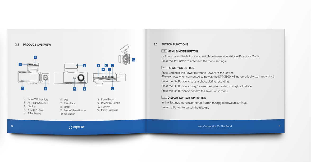 Records detected incidents while vehicle’s parked. Requires Hardwire Kit purchase (KPT-SHWK).